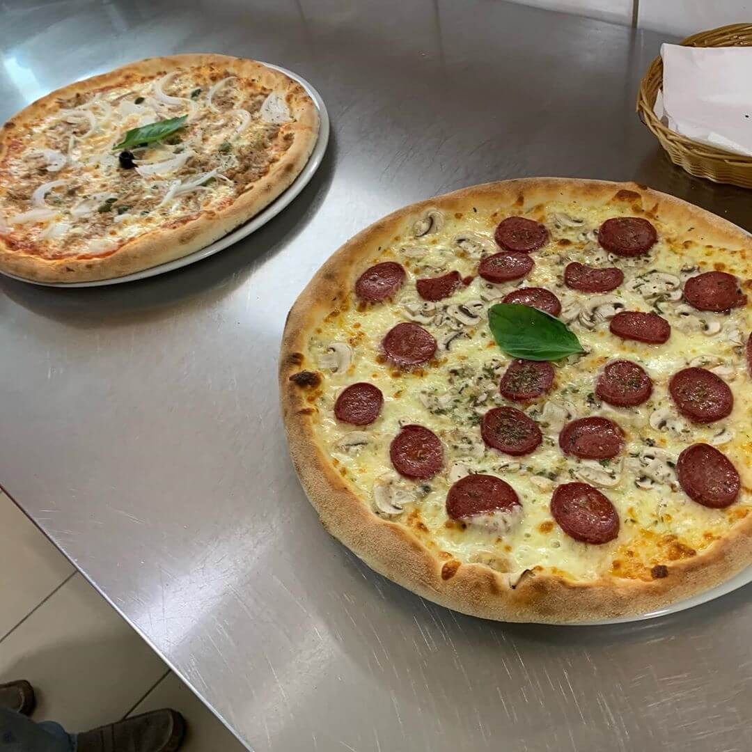 Tomates, Mozzarella, Jambon d’épaule, Champignons, Salami piquant, Oeuf, Origan
