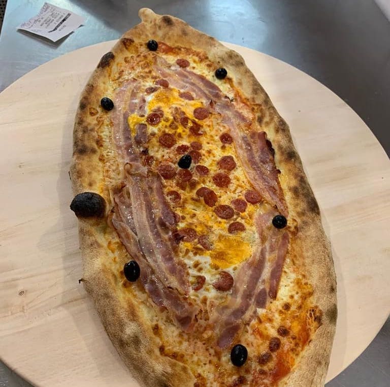 Tomates, Mozzarella, Jambon d’épaule, Lard, Oignons, Oeuf, Origan