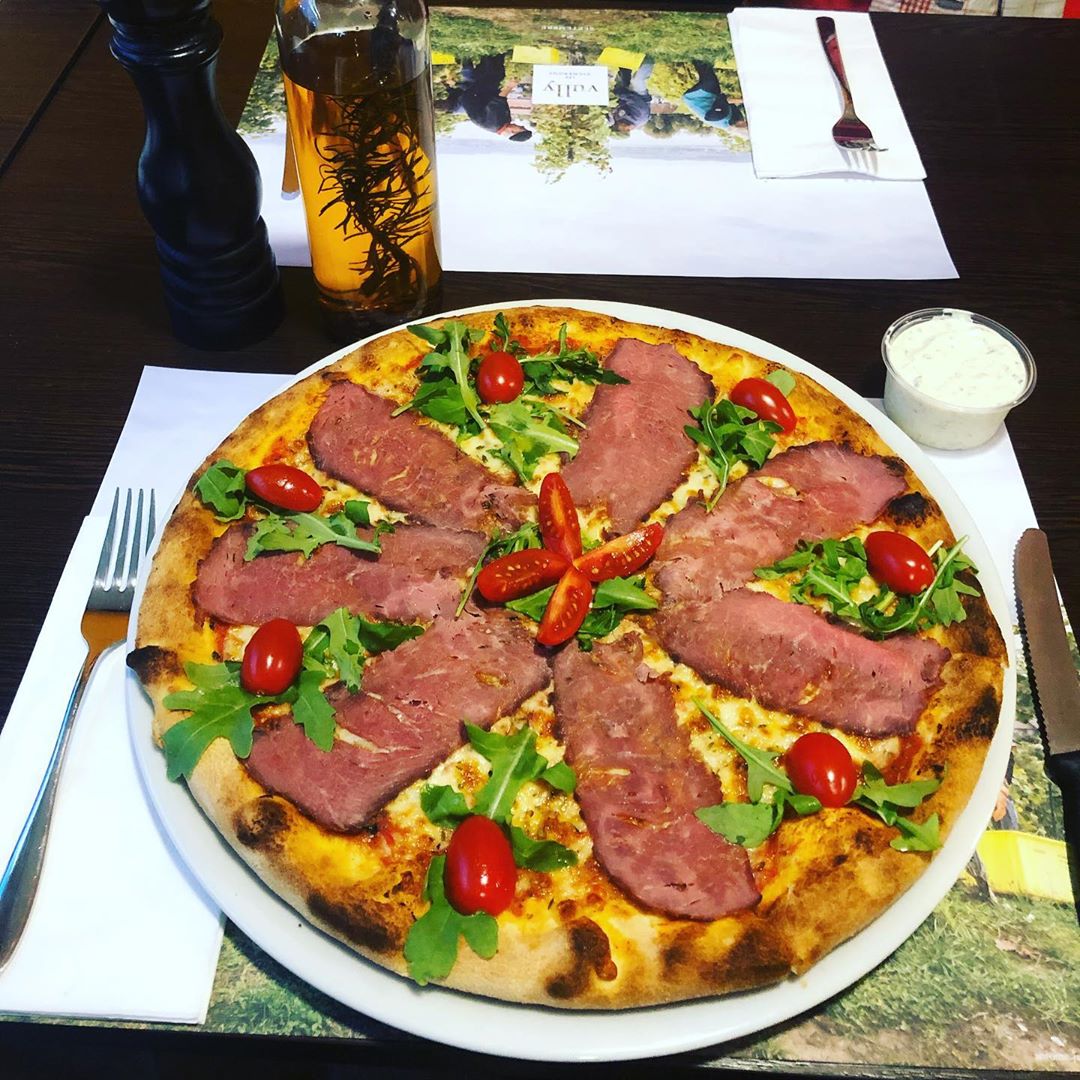 Tomates, Mozzarella, Roast-Beef, Rucola, Origan