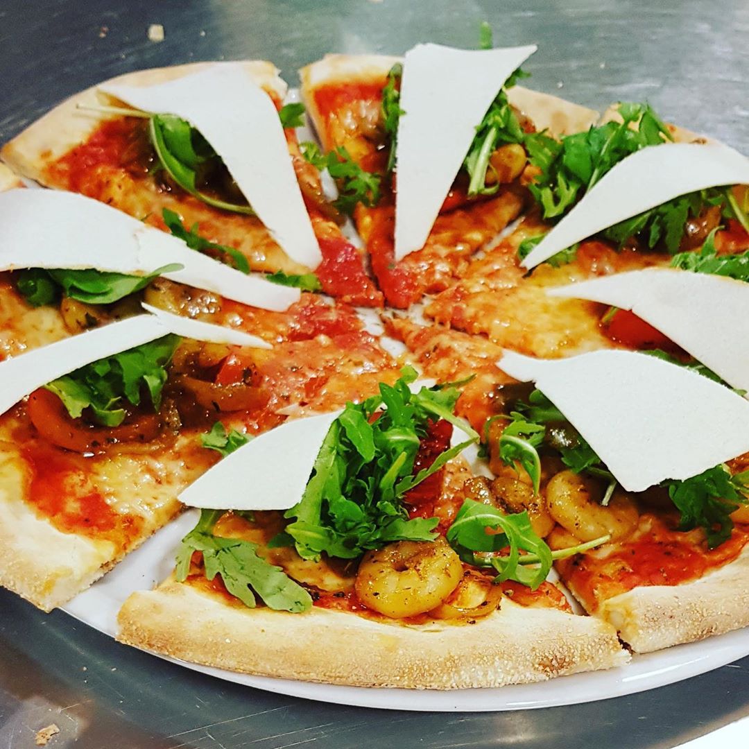 Tomates, Mozzarella, Jambon cur, Rucola, Grana Padano, Tomates cherry, Buffala, Origan